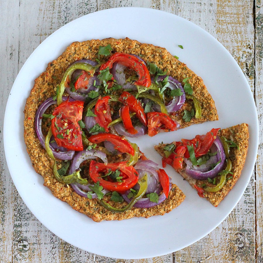 Mandee tried this crust here and loaded it with some delicious cashew cheese and beet pesto!