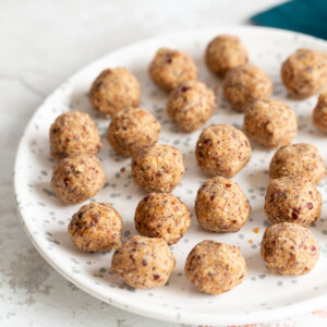 With these easy Vegan Pizza Bites, you get all of the delicious flavors of pizza in bite-size form. These pizza snack balls are grain-free and gluten-free, made with almond flour and sun-dried tomatoes. Makes 10-14 balls