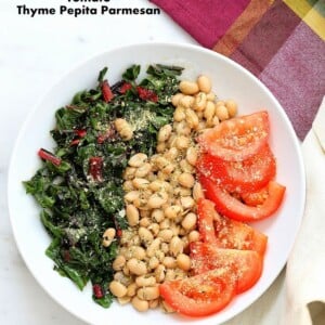 Herbed White Bean Chard Bowl with Pepita Parmesan