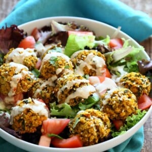 This came together easily and had wonderful flavors. I added a tsp of agave to the dressing and air fried the fritters. These also work well in a pita with some hummus. Fantastic recipe.