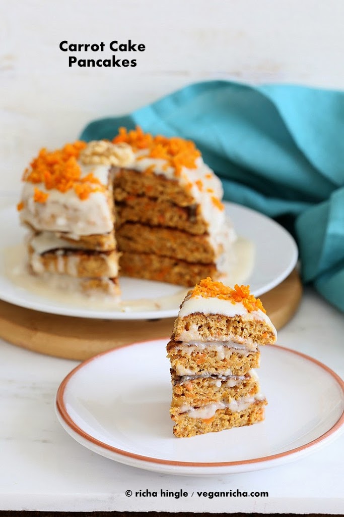 Carrot Cake Pancakes with roasted carrots and walnuts. with Yogurt Coconut Cream frosting. Yuhm. GF SF