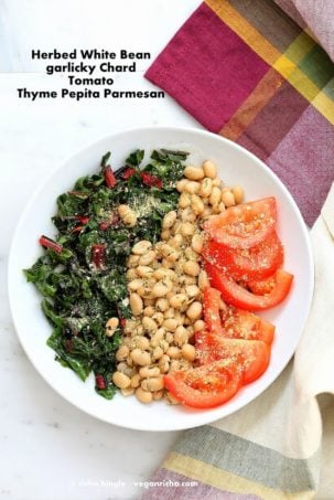 - Herbed white bean, garlic chard and pepita parm bowl. GF NF SF