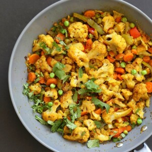 8 Spice Veggie Stir fry – Vegetable Masala Subzi. Use up the veggies to make this dry 1 Pot Veggie Stir fry with Indian Spices. Serve with Dal or Curries or make a wrap with a dressing of choice. Add chickpeas or beans to make a meal. Vegan Gluten-free Soy-free Nut-free Recipe