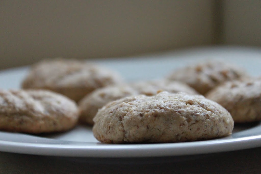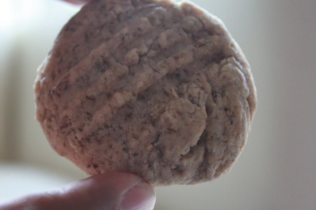 - Oil hands and pick up tablespoon full dough, lightly roll into a ball and flatten on parchment paper using a fork. You can drop spoonfulls directly as well, to get random shaped cookies :), but dont let them get thicker than a 1/4 inch.