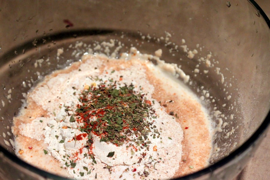 - a generous pinch of garlic powder, dried parsley, dried basil and paprika