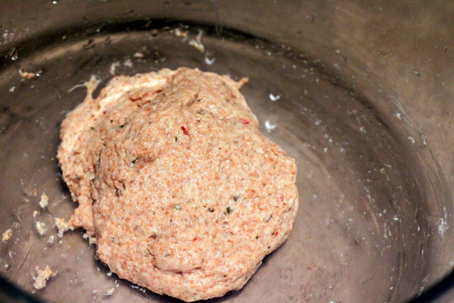 - Use some spelt flour and oiled hands to gather the dough and knead for 3-4 minutes.