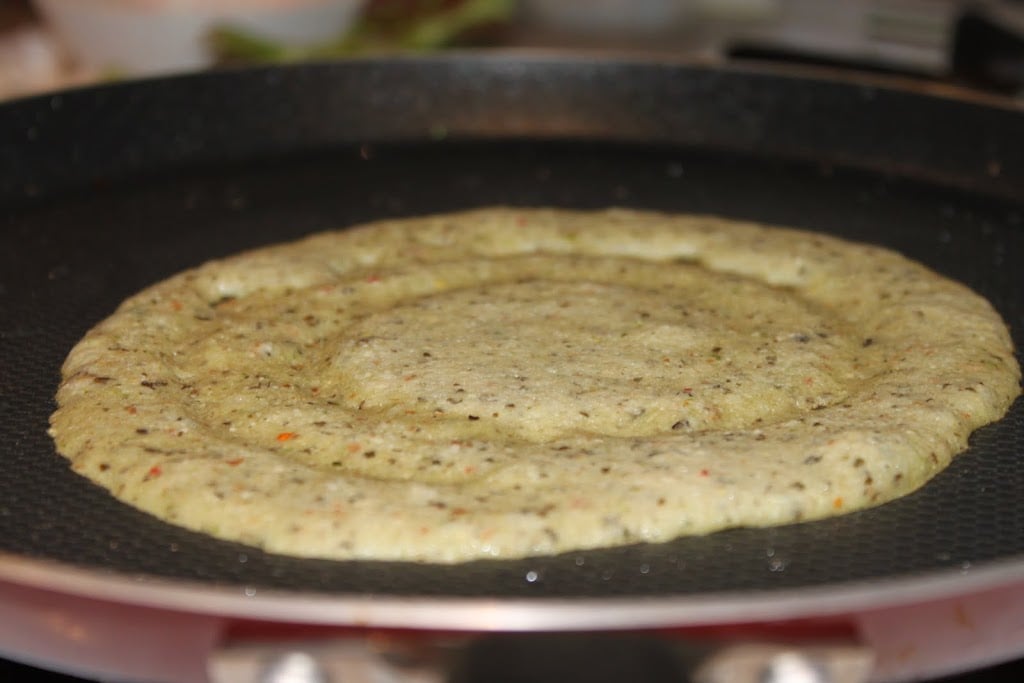 - Grind the mixture to as fine paste as you can with a little extra water. Heat a griddle on medium high for a few minutes. Drop a few drops of oil on it and spread the oil all over using a paper napkin or the cut side of an onion to form a thin layer.