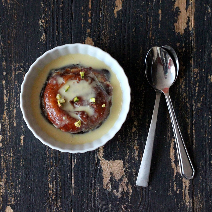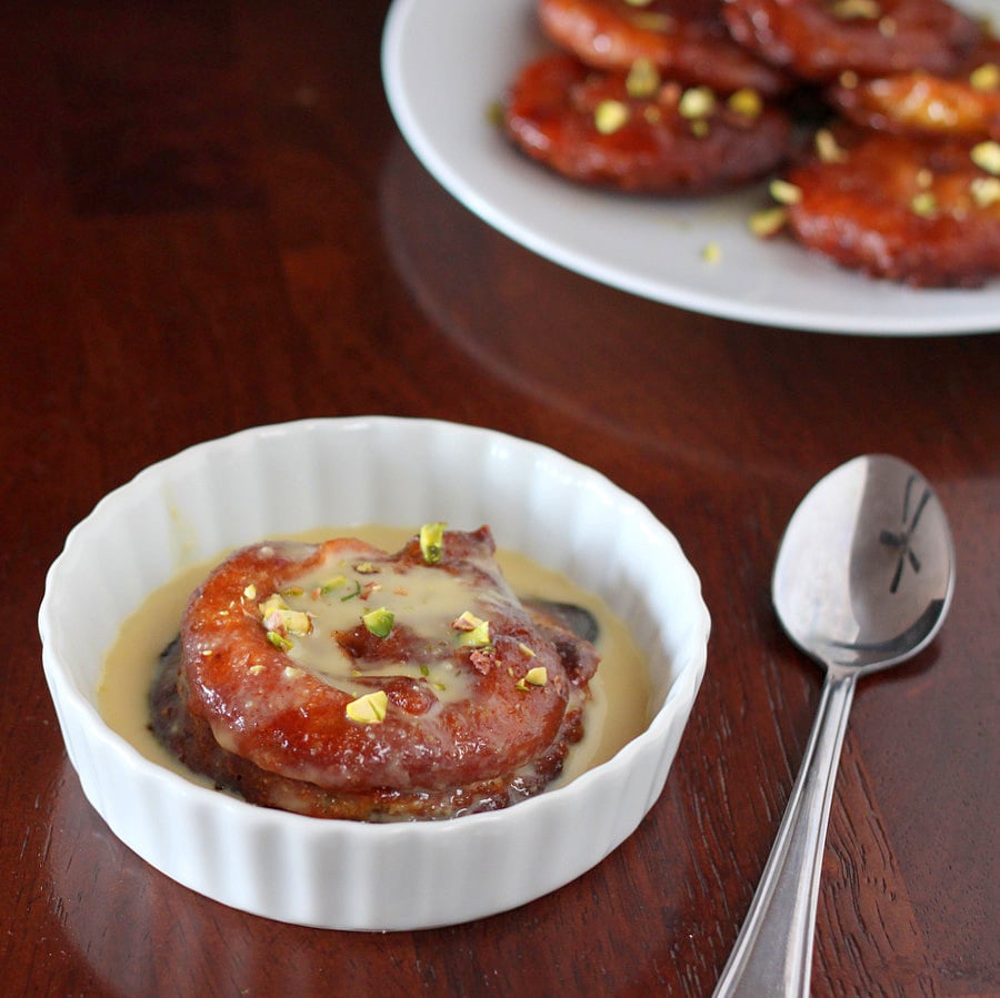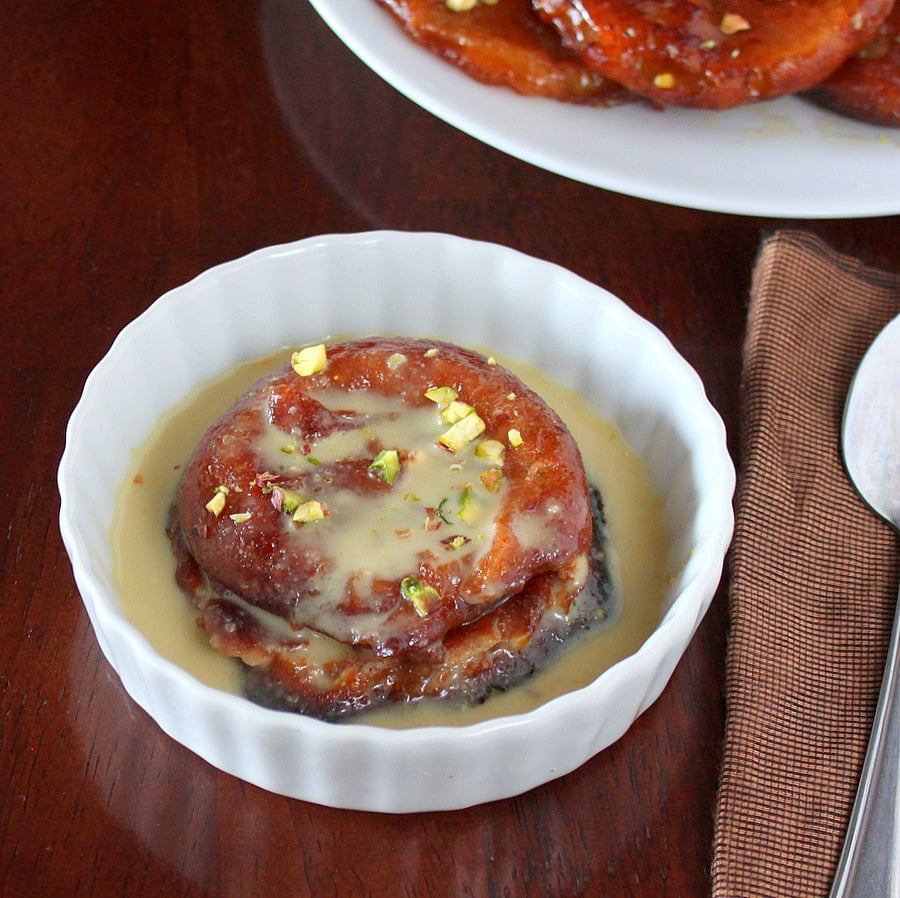 Top with chopped Pistachios and serve as is, or top with cold Rabri.