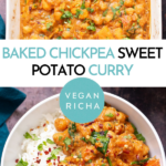 Baked Chickpea Sweet Potato Curry – a one-pot wonder made in one casserole dish. So easy to make, so perfect for a quick weeknight dinner. No standing around sautéing needed! Glutenfree, soy-free, nut-free option.