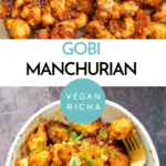 In this lightened-up take on the Indian-Chinese restaurant-favorite Gobi Manchurian, cauliflower florets are baked up until crispy, then drenched in a sweet and spicy delicious manchurian sauce! Serve it as an appetizer or main dish. Gluten-free option.