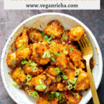 I’m always excited when I can present you with an easy spin on a restaurant favorite and today I have a good one for you! One of those special-occasion restaurant menu items that we all love to order when eating out but never considered making at home. Cauliflower Manchurian! This makes a great addition to the festival menu!