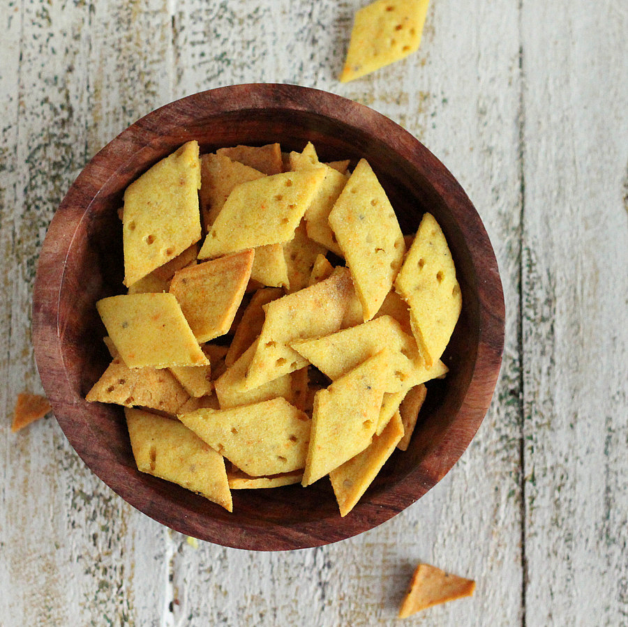 You can sub out the Indian spices with dried herbs like basil/parsley and some nutritional yeast.ย It is a great base wheat cracker to change up to preference and munch on as is, with hummus, chutneys, dips or soups or make canapes with toppings of choice!