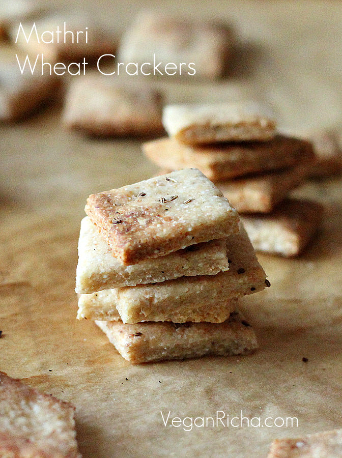 Mathri are deep fried crackers that are whipped up during most Indian festivals in the savory festival collection. They usually are made with all purpose flour/maida and/or Semolina with seeds of choice added to the dough. These are the baked version.