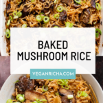 This Vegan Baked Mushroom Rice comes together quickly and easily in one casserole dish and is baked in the oven to fluffy, flavorful perfection. It will become a family favorite in no time. Glutenfree Nutfree. Soy-free option included.