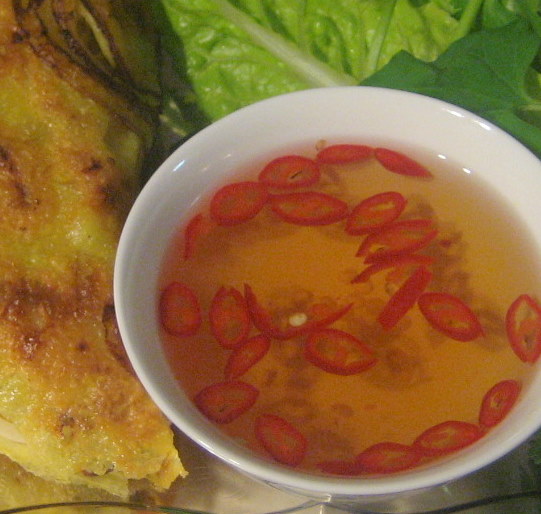 Banh Xeo (Vietnamese crepes) with nuoc cham sauce