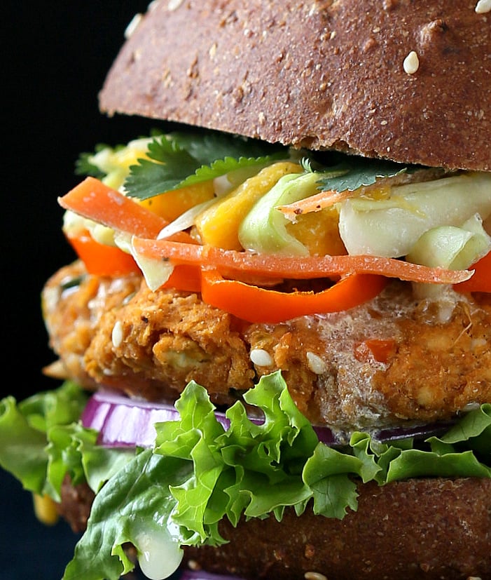 Serve these with a simple, creamy slaw or your favorite burger toppings on a bun, or use them to top a green salad for a lighter meal. I love adding fruit to the slaw. The original recipe was written with mango in the slaw. Mango add some juicy sweet to the creamy, tangy, crunchy slaw for amazing balance of flavor.