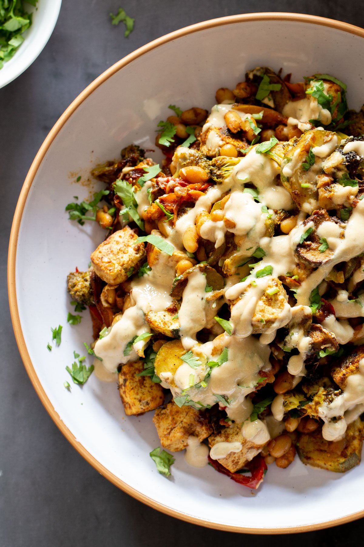 Smoky Berbere Sheet Pan Veggie Dinner with Tahini Dressing