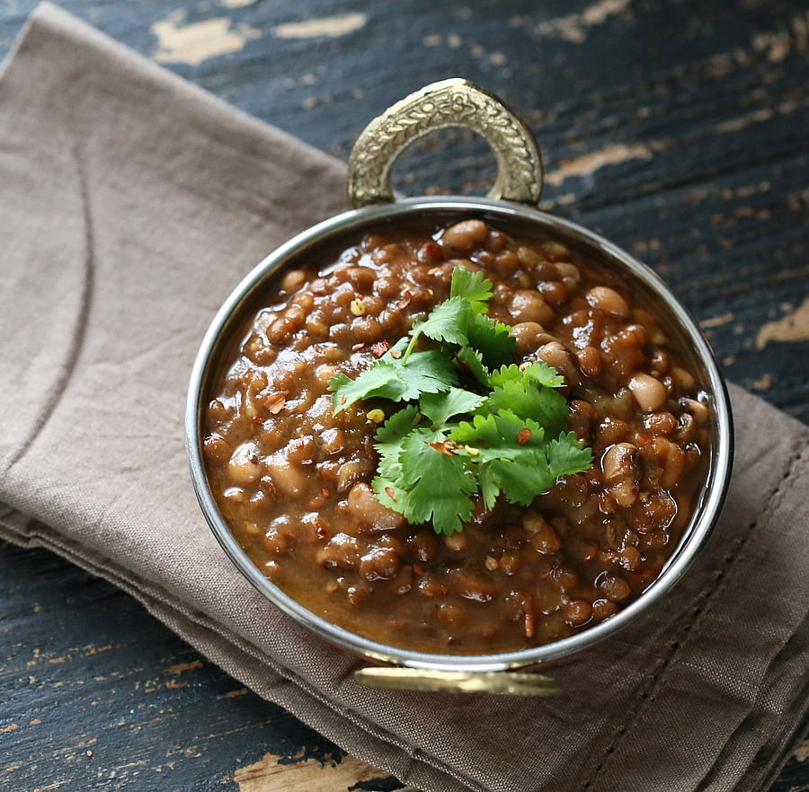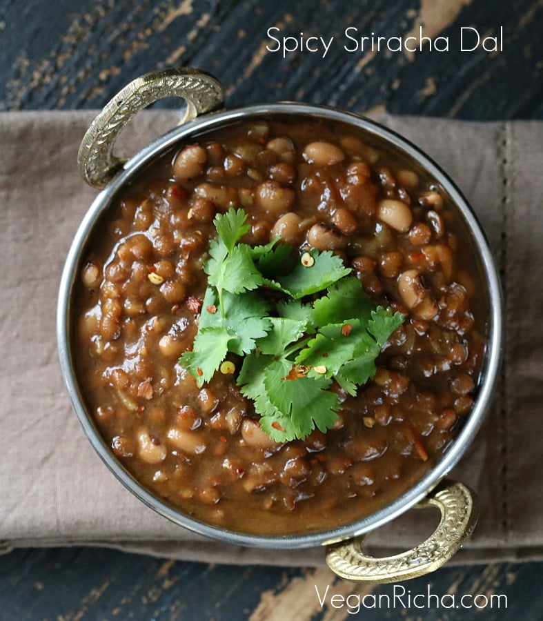 Black Eyed Pea Lentil Soup with Sriracha Tadka. Raungi aur Sabut Masoor Dal. Vegan Glutenfree Recipe