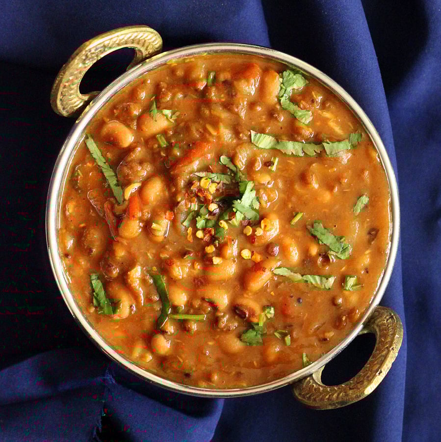 - Taste for salt and spice. Add more garam masala if needed. Add more water if needed(depends on the method of cooking, the beans and your preference of the consistency)