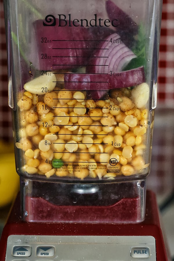 - Drain and add to food processor or blender. Add the rest of the ingredients except chickpea flour. Pulse to form a coarse mixture. If using a Blendtec or other blender, blend half the amount at a time. Transfer to bowl and add chickpea flour if the mixture is too mushy and doesn't easily stick together. Form patties or long fingers.