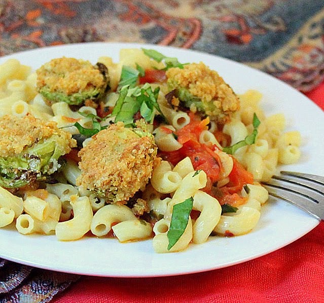 Jump to RecipeBreaded Brussels Sprouts on pasta with tomato basil sauce