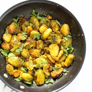 Brussels Sprouts is another one of those veggies where I want to do more with it other than roasting it in the oven. I’ve added it to curries and Dal, caramelized it with maple + spices and more. This version is a simple Brussels Sprouts Subzi (Indian dry veggie side), which is simply spiced but packs a ton of flavor. Serve as a part of your favorite buddha bowl, or Indian meal bowl with Dals or curries and Rice/ flatbread.