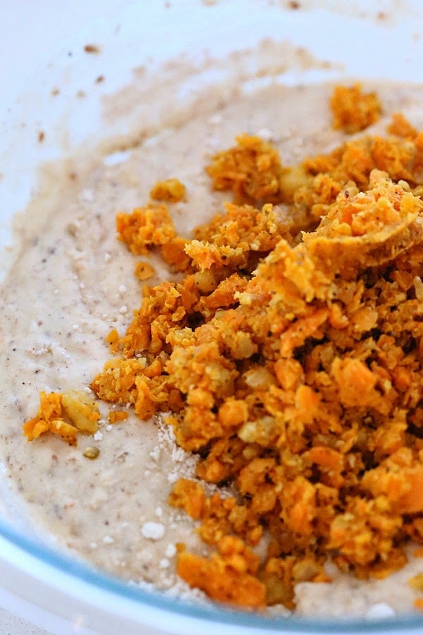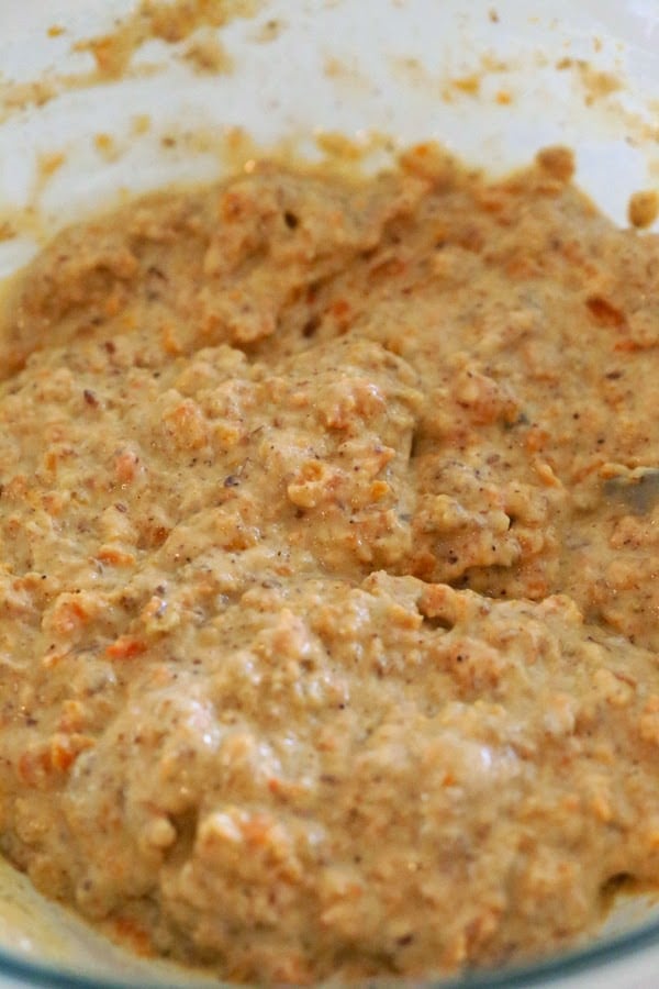 - Grate the carrots, or pulse in a blender/food processor to a coarse shred. Pulse the walnuts to small pieces. I used my blendtec. (total 1.25 cups of grated carrots and chopped walnuts).