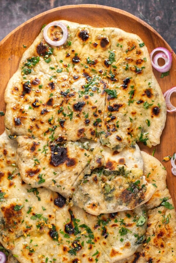 Vegan Spinach Potato Cheese Stuffed Naan โ yeast free