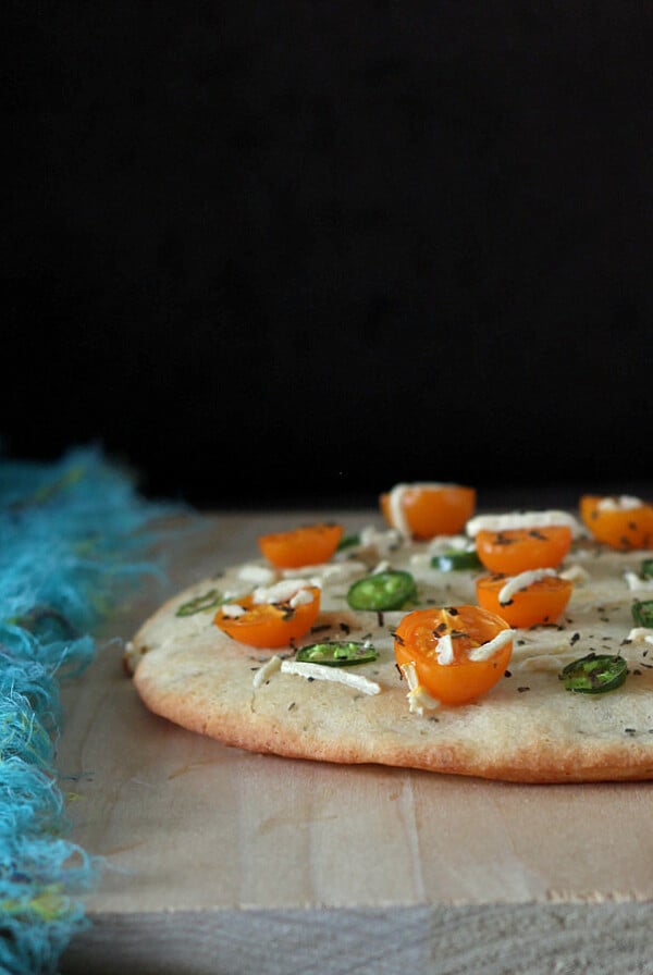 Indian Main CoursesRORefined Oil-FreeSFSoy FreeOil-free Cheesy Avocado Naan flatbread with Garlic Kale and Roasted Acorn. Vegan recipe