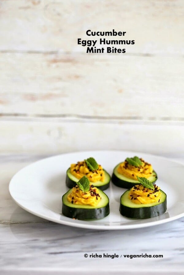 Cucumber Hummus Sesame Seed Mint Appetizer Bites. Vegan Glutenfree Recipe