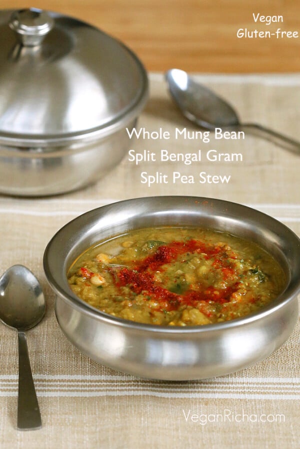 Whole Mung Bean, Split Bengal Gram, Split Pea Stew. Tirangi Dal. Vegan Glutenfree