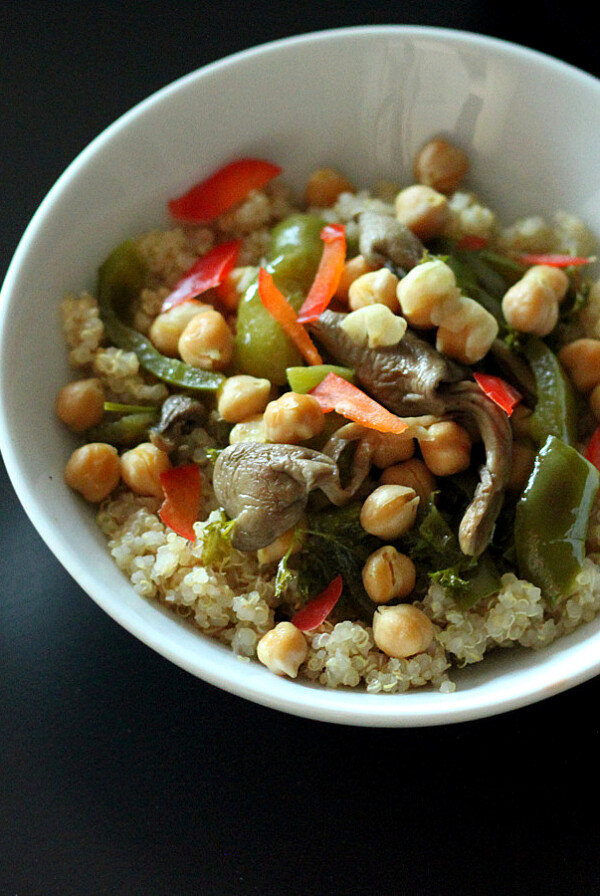 Quinoa Bowl with Bell Peppers, Chickpeas, dried Oyster mushrooms. vegan glutenfree recipe