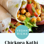 These easy Chickpea Kathi Rolls filled with Indian spiced chickpeas and fresh cilantro mint chutney are the perfect easy lunch or weeknight dinner! Nutfree Soyfree Oilfree Gluten-free option