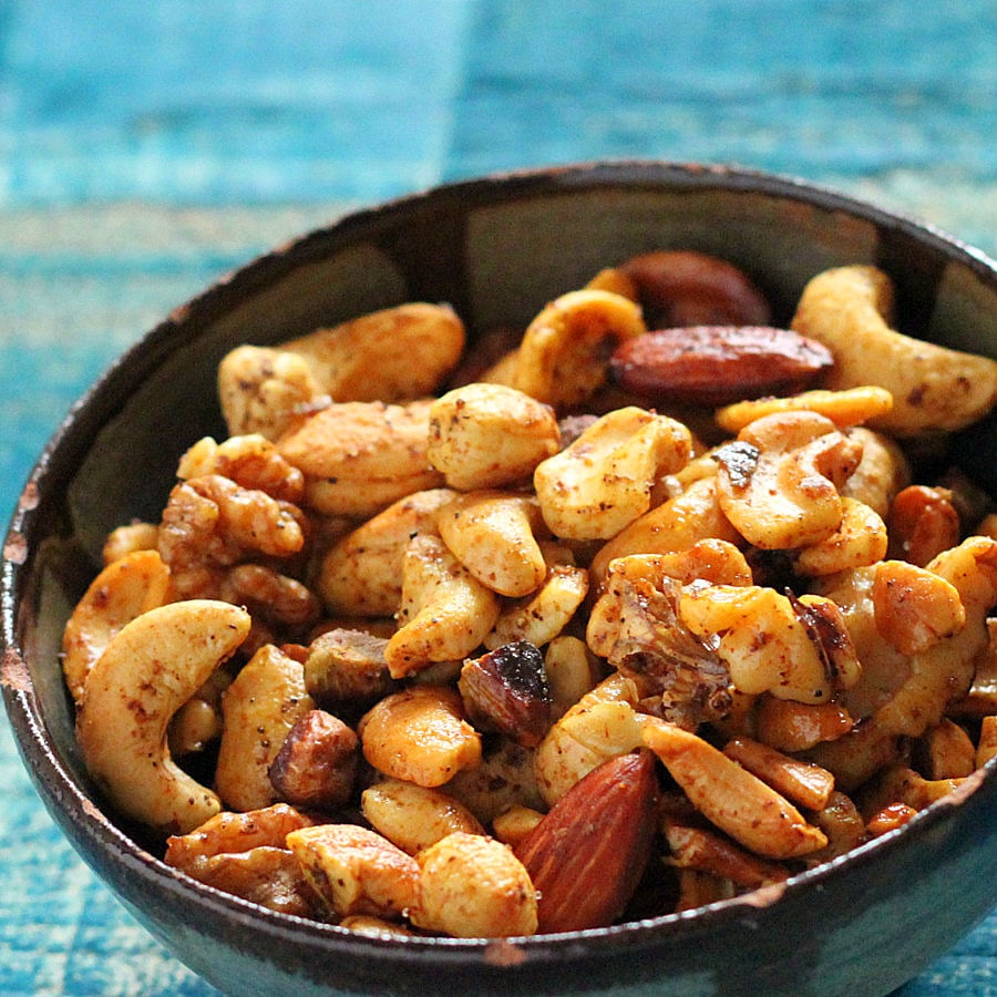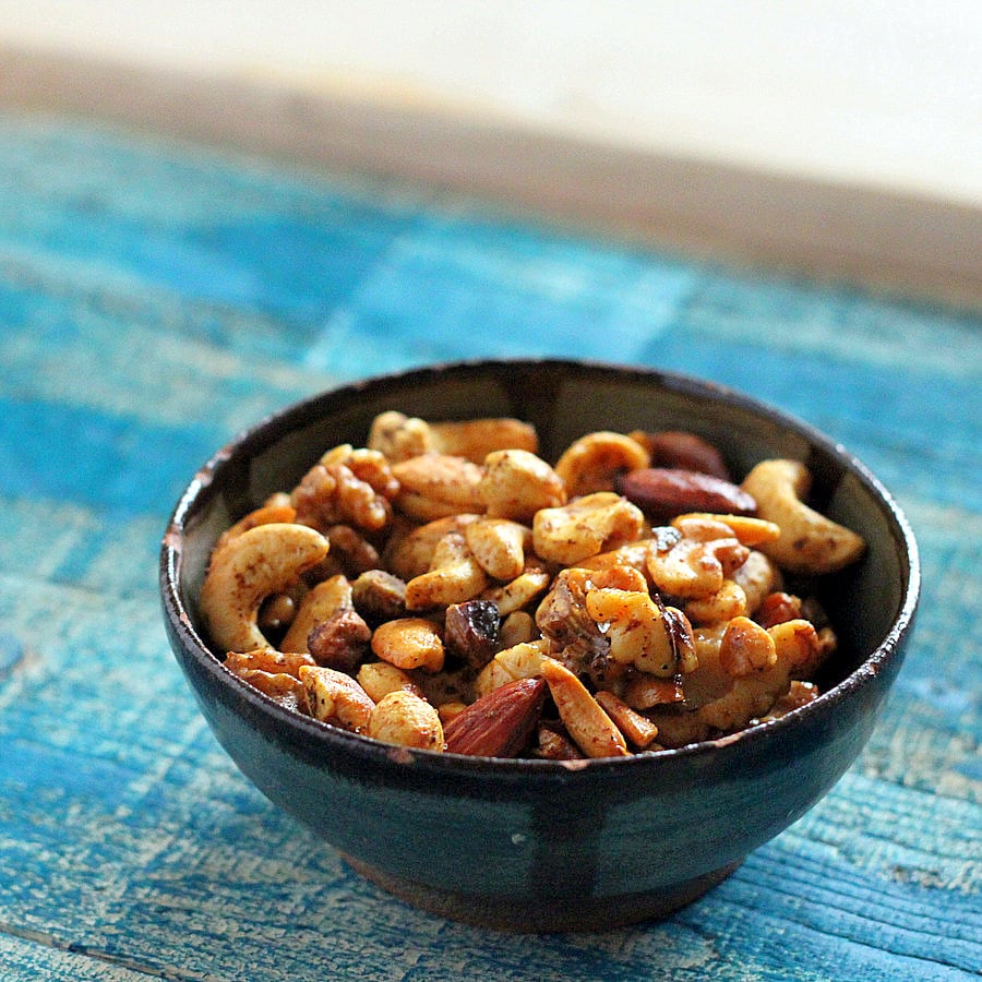 A vegan gluten-free snack! Masala Spiced Roasted Nuts are super addictive.