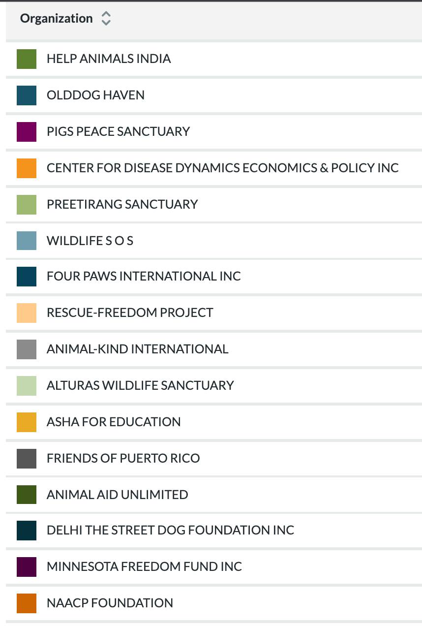 This is flexible list as we keep donating to wherever we see an immediate need through the year