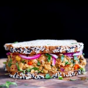 A simple chickpea salad sandwich can be seasoned like vegan chicken salad, of course, but you can also use so many fun additions to mix up the flavor profile!