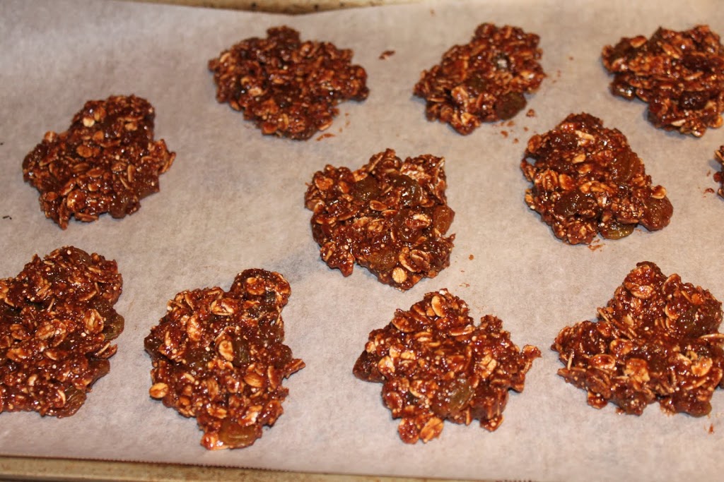 In case anyone is wondering: I subbed coconut for flax meal, honey for agave syrup, peanut butter for almond butter, and finely chopped walnuts for quinoa. The honey makes my cookies not vegan, but I think my substitutions are still healthy 🙂