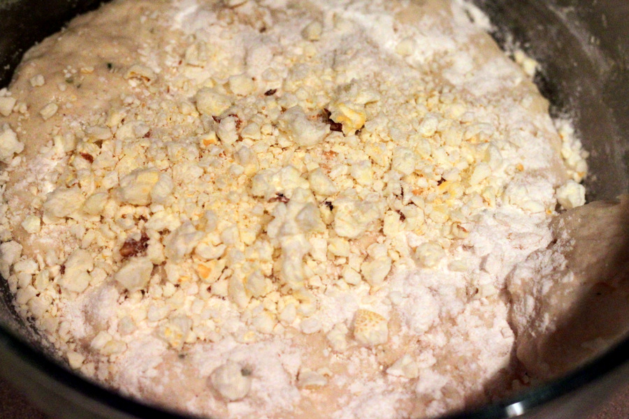 Add the popcorn crumbs and a Tablespoon of bread flour.