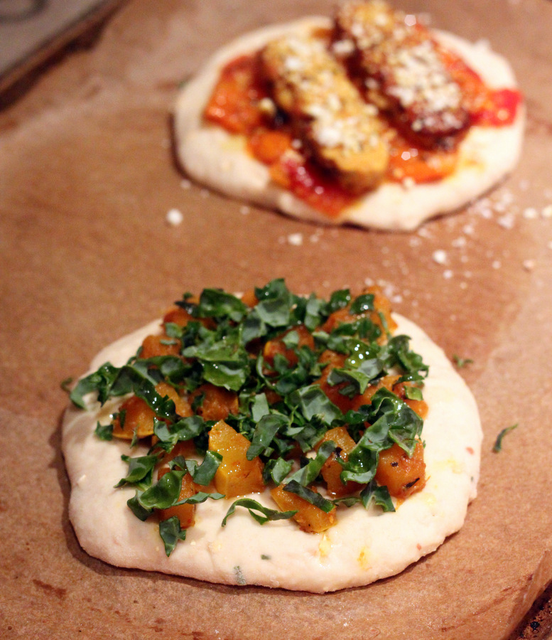 The other one had extra virgin olive oil brushed on top and then topped with Rosemary scented butternut squash and chopped Kale(1 leaf).