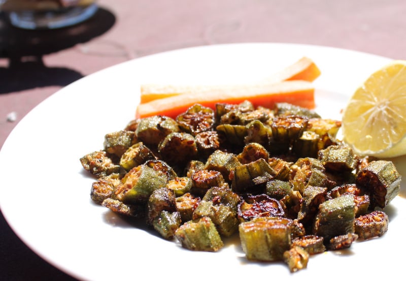 Crisp Okra with Indian Pickle Spices. Achari Bhindi. Vegan Recipe.