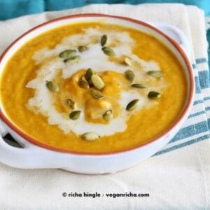 I have tried 3 recipes of butternut squash prior to this one, and today I tried yours. And seriously, you have an amazing sense of combining just the right things in a recipe. Best butternut soup everrrrr….!!! Thank you so much and please keep inspiring us to cook delicious vegan food!! I roasted the squash ( as you said, when the knife could get in easily, not fully roasted) and then i chop off the sides and use skin and seeds too. Use vitamix to blend in the end – to keep all the nutrition in.