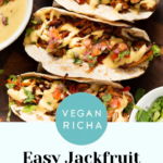 - Add more Protein: Add a layer of refried beans to the tacos or add some spiced beans to the tacos. Or double the marinade, use half with crumbled up 7 oz tofu. Bake that as well until somewhat crisp and add a mix of jackfruit and tofu for filling,