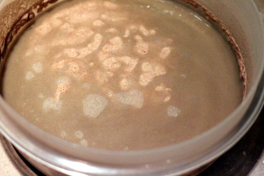 When ready to make the injera, gently remove the dark water on top into a bowl