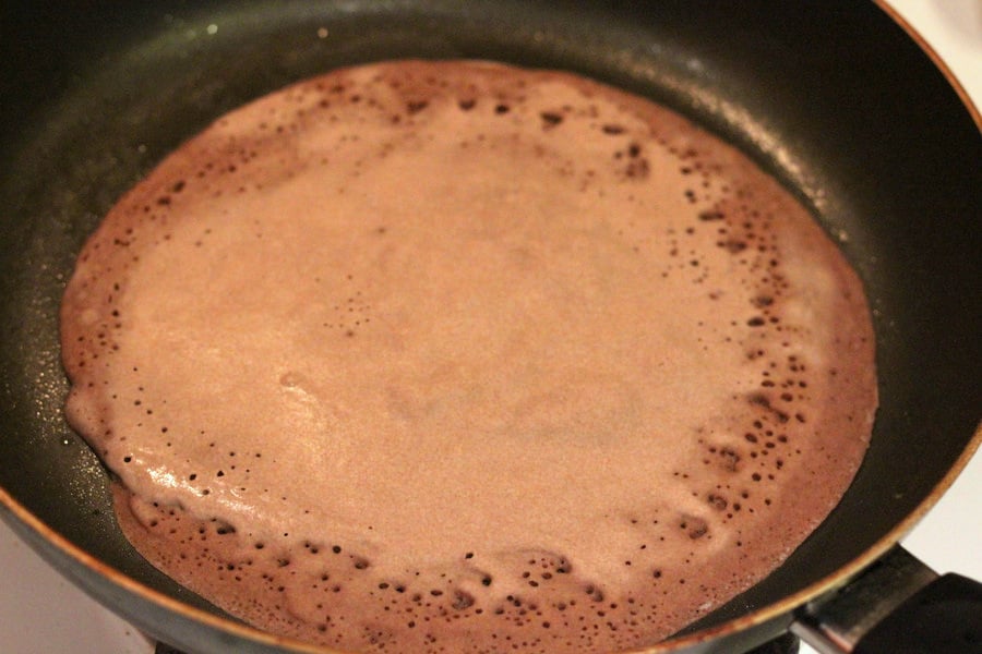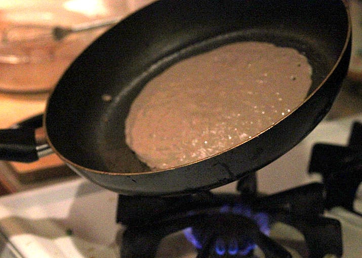 Use a good non stick thick bottom pan or seasoned cast iron skillet. I have a non stick pan that I Â use only for pancakes, chickpea omelettes and crepes. No stir fries and other things that require mixing.