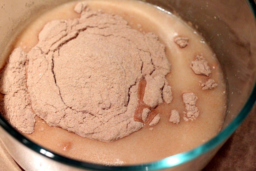 Whisk 1/2 cup teff flour with 1/2 cup warm water, sugar and yeast.