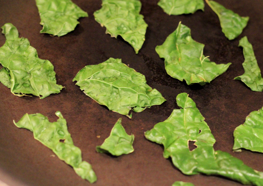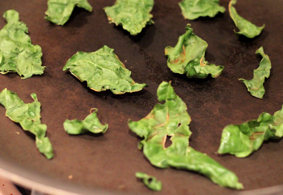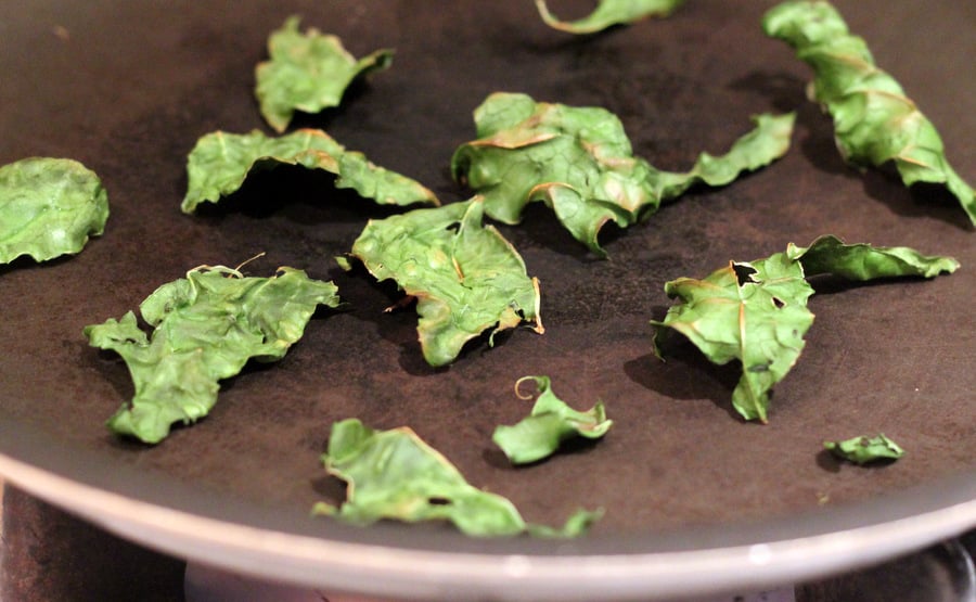 The Kale will start to crisp and crinkle after 2-3 minutes.