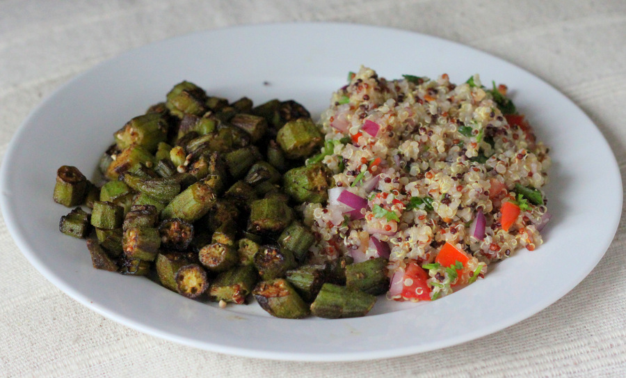 The pancakes and roasted okra look delicious, but I disagree about the kale chips – they need that bit of oil, because fats improve nutrient absorption! Fat is a good thing 🙂 No guilt.