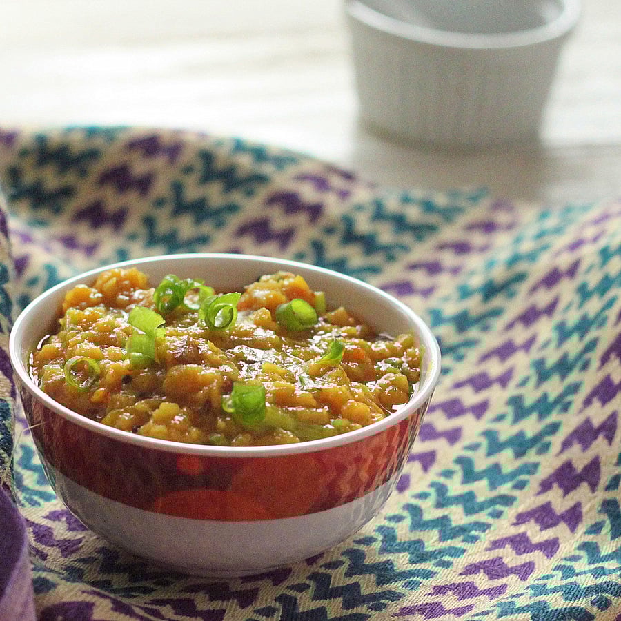 This red lentil stew (masoor daal) is fat free, gluten free, and of course, vegan. Jump to Recipe