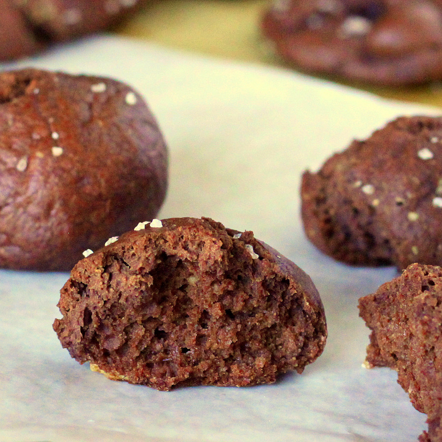 And since we are talking chocolate, here is a Chocolate Pretzel. Lightly sweet, lightly chocolatey mochaish bitter and crunchy salt. Just about perfect dont you think. To make plain pretzels, reduce sugar to 1 Tablespoon, leave out the cocoa and coffee, add 2 Tablespoons more starch to balance the missing cocoa. Or use the dough of my glutenfree Oat bread loaf.