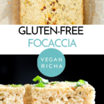Skip the dinner rolls and. make this easy Gluten free Focaccia made with almond flour, oat flour, and potato starch. Topped with herbs, garlic, and olive oil, it makes for the perfect side for soups and salads. Gum-free & vegan.